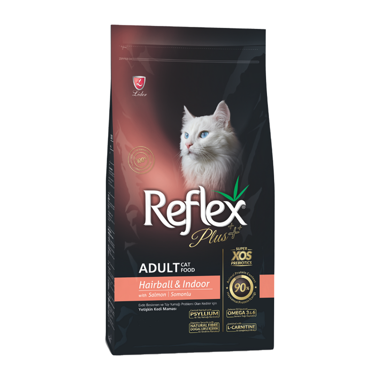 غذای خشک گربه ایندور هربال رفلکس پلاس (Reflex Plus Cat Hairball-Indoor) وزن 15 کیلوگرم یکی از محصولات شرکت بزرگ رفلکس می باشد. غذای خشک گربه خانگی بالغ رفلکس برای تمامی نژادهایگربه بالغ مناسب است. شرکت رفلکس محصولات خود را متناسب با نیاز غذایی حیوانات خانگی تولید کرده است. برند رفلکس ساخت کشور ترکیه است. این غذای خشک مخصوص گربه های بالغ است. گربه هایی که در خانه زندگی می کنند تحرک کم تری نسبت به گربه هایی که در خارج از خانه زندگی می کنند دارند.